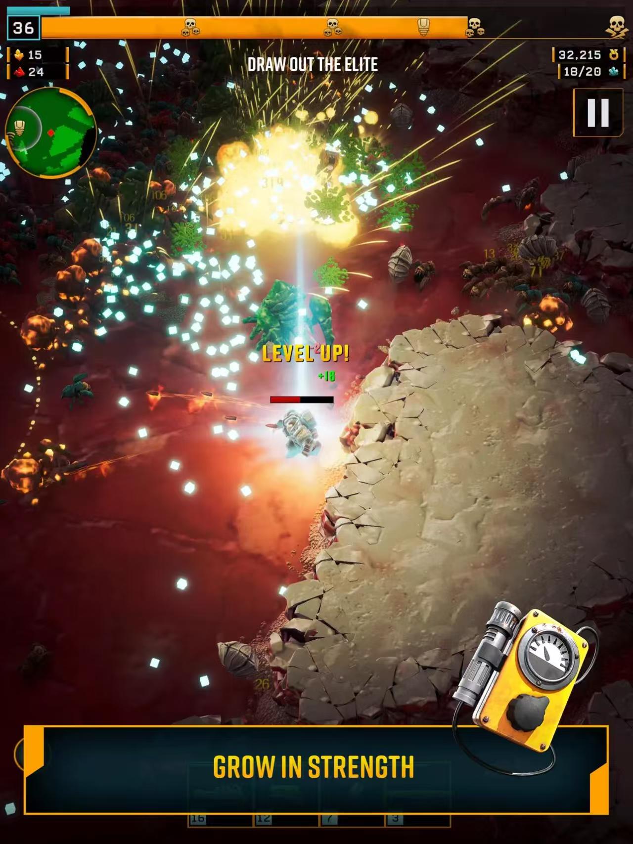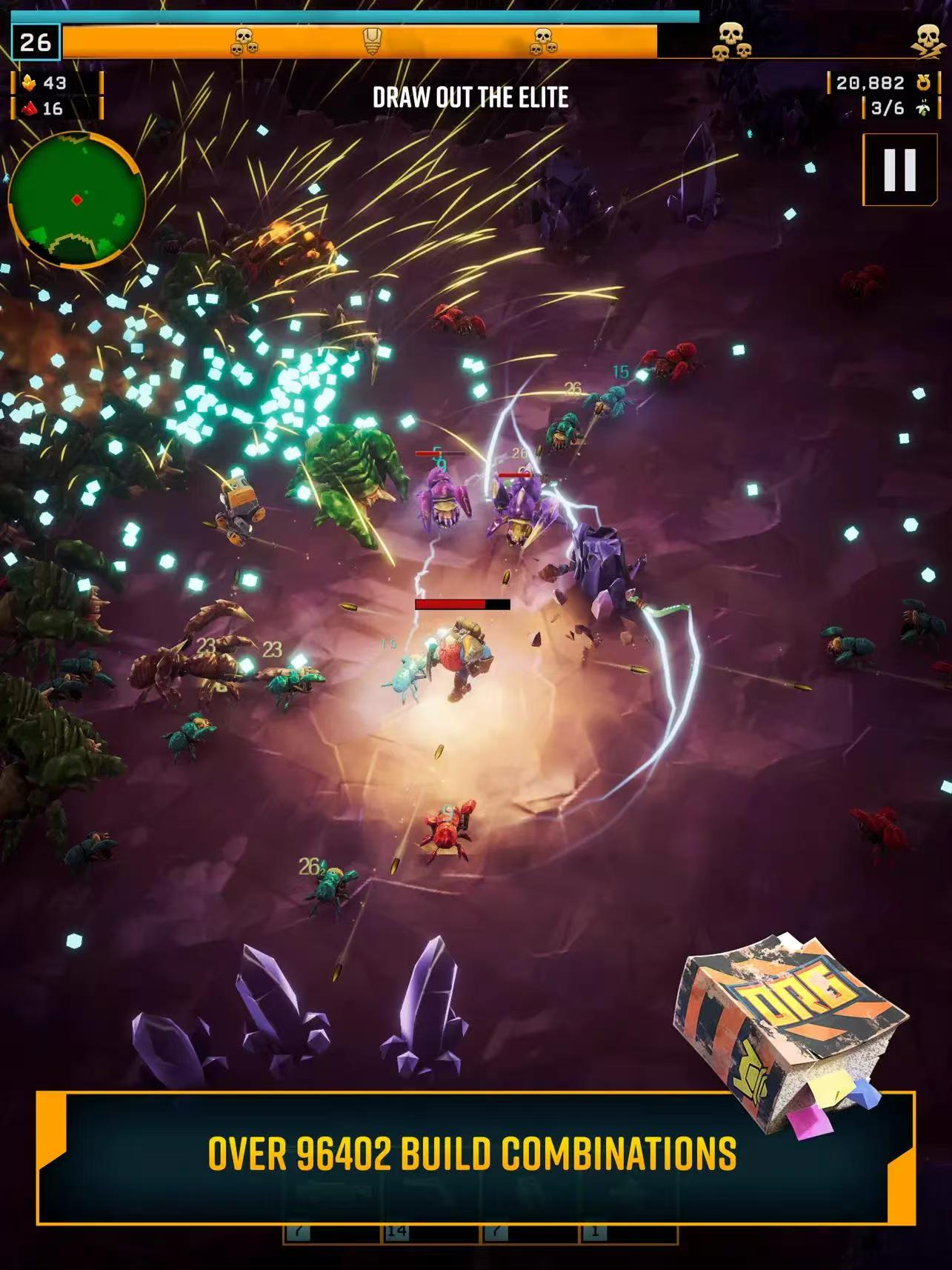 消灭异虫、升级装备,一往无前地深入霍克斯的致命洞穴。收集并搭建备类威力惊人的武器,在疾风骤雨股的战斗中扫射一波接一波的外星怪物,深入挖掘潜藏在矿洞岩体之中的各类宝矿。作为类幸存者游戏,你完全不用担心应该盯着岩体挖矿,还是盯着虫群射击--在你仓皇逃窜或挖到手软的同时,武器将自动朝着对的方向喷吐弹幕。